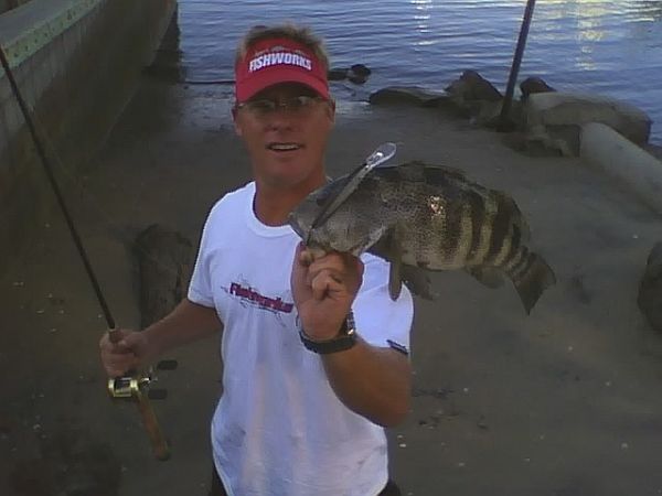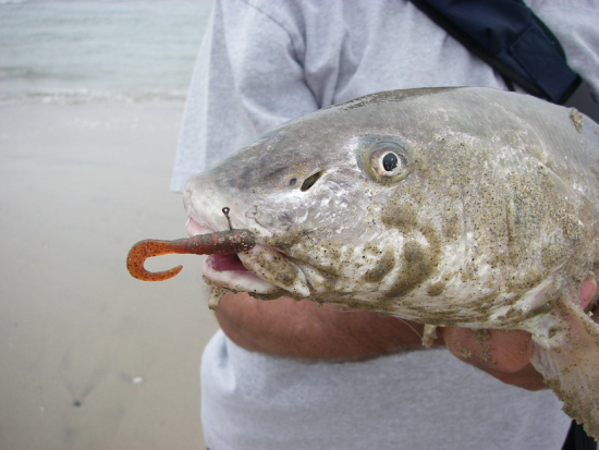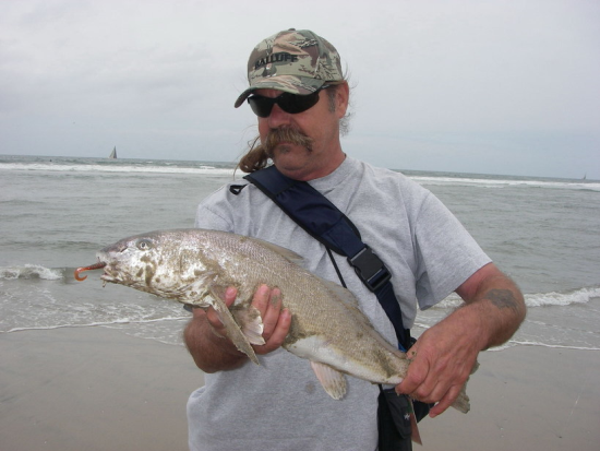 Corbina on the grub (Big Hammer #28- Motor Oil Red Perch Grub) Taken on 6/10/06 Thanks Mike!