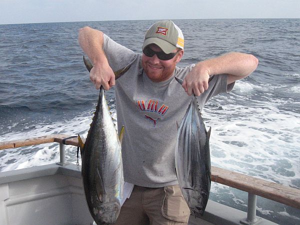 Jay with a nice yellowfin and skipjack tuna on an overnight trip on the Tracer 09-05-08.