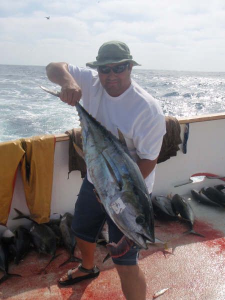 Peter with a nice bluefin tuna caught on a recent trip (8-11-08) out of San Diego, CA.