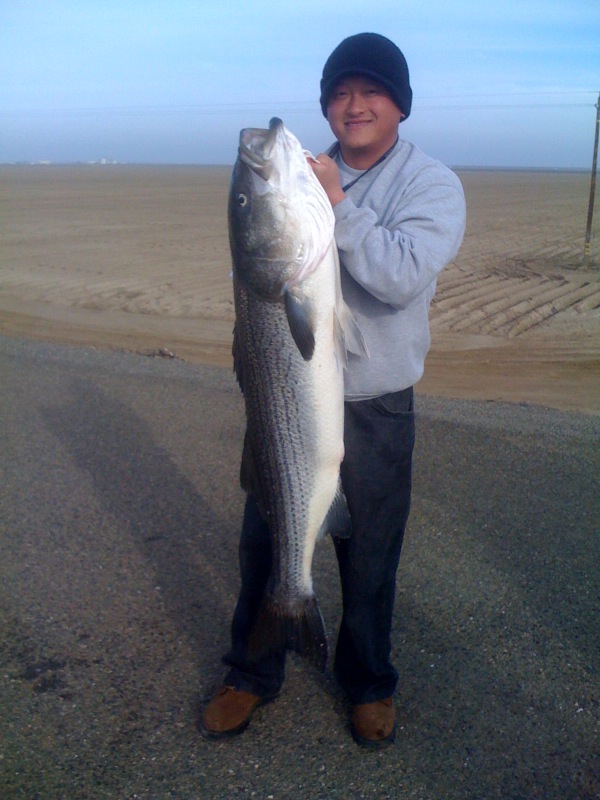 Wayne with a 40lb striper caught off the California Aqueduct near Fresno, CA. 1/8/10
