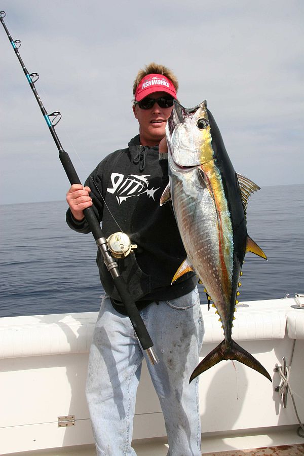 Scott D. with a 25# plus yellowfin tuna on a Shimano Trinidad reel 09-15-08.